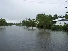 During the summer ‘cyclone season’, Innisfail is frequently under threat from tropical cyclones developing in the Coral Sea.[18] Furthermore, high rainfall associated with aforementioned cyclones and monsoons, combined with Innisfail settlement on adjoining rivers causes flooding to be commonplace, occurring to varied degrees of severity annually.[19]
