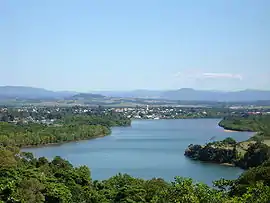 Innisfail's town centre is situated at the junction of the Johnstone River and South Johnstone River, approximately 5 km (3 mi) from the coast.[10] It is located near large tracts of old-growth tropical rainforest surrounded by vast areas of extensive farmlands. Queensland's highest mountain, Mount Bartle Frere, part of Australia's Great Dividing Range, is 15 kilometres (9 mi) to the north.[11]