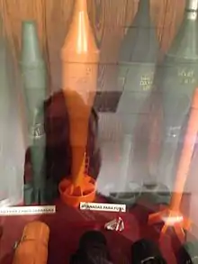 The Spanish munitions company Instalaza made two models of rifle grenade during the 1960s. As well as being used by the Spanish Army, the Portuguese Army also used them in the colonial wars that took place in its colonies in Africa.