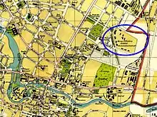 In 1913, a project of extension was approved in order to use plots of land lying on the western side of the Ossoliński Alley, in order to develop areas for exhibition and trading: the outbreak of World War I interrupted the work and the plan was never completed.[2] In 1919, prior to Bydgoszcz returned to Polish territory, employees, research records, plant preparations and laboratory devices were moved to Frankfurt upon Oder, and then to Gorzów Wielkopolski then part of Germany. However, this did not stop the activities of the Institutes, since Poland kept using actively the scientific buildings on the site.[4]