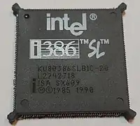 ![]() An Intel i386DX 16 MHz processor with a gray ceramic heat spreader | |