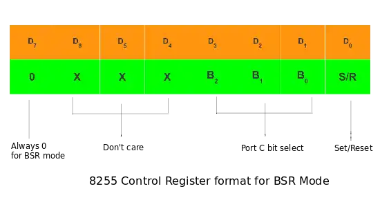 The Bit Set/Reset (BSR) mode is available on port C only. Each line of port C (PC7 - PC0) can be set or reset by writing a suitable value to the control word register. BSR mode and I/O mode are independent and selection of BSR mode does not affect the operation of other ports in I/O mode.[13]