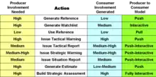 Intelligence has to be relevant. Assuming that some reference is considered to be useful, such as a basic country reference, users pull information from it when they have a question. There is relatively little interaction involved in producing the reference; analysts add to it when they have new material.