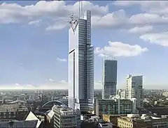 The tower would have been close enough to the Beetham Tower to form a coherent cluster. Also planned was a helipad on top of the skyscraper which would have been the first of its kind in the United Kingdom.[7]