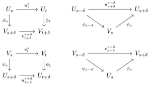 The persistence modules and are said to be -interleaved if there are -shifts and such that the following diagrams commute for all .