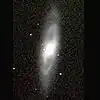 An intermediate spiral galaxy is a galaxy that is in between the classifications of a barred spiral galaxy and an unbarred spiral galaxy. It is designated as SAB in the galaxy morphological classification system devised by Gerard de Vaucouleurs.[1] Subtypes are labeled as SAB0, SABa, SABb, or SABc, following a sequence analogous to the Hubble sequence for barred and unbarred spirals. The subtype (0, a, b, or c) is based on the relative prominence of the central bulge and how tightly wound the spiral arms are.