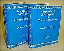 The International Encyclopedia of Women Composers is a 1981 reference book by Aaron I. Cohen which contains biographies of over 5,000 women composers from nearly 70 countries. It was put together when Cohen was retired in order to help fill a gap in the history of music. Two editions were published and the second edition consists of two volumes.