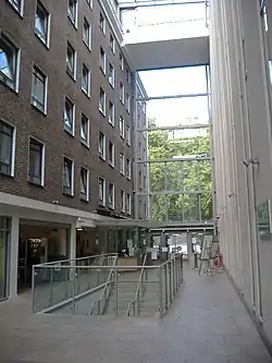 International Hall is a Hall of Residence owned by the University of London and situated on Brunswick Square and Lansdowne Terrace in the Bloomsbury district of London. It is an intercollegiate hall,[1] and as such provides accommodation for full-time students at institutions such as University College, King's College, Queen Mary, School of Oriental and African Studies, the London School of Economics, and other such constituent colleges of the University of London. It is the largest single hall of the University of London.[2]