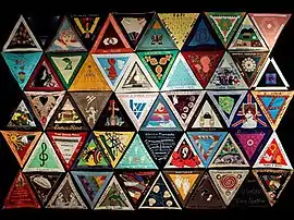 The International Honor Quilt (also known as the International Quilting Bee) is a collective feminist art project initiated in 1980 by Judy Chicago as a companion piece to The Dinner Party.[1][2] The piece is a collection of 539 two-foot-long quilted triangles that honor women from around the world.[3] Through the Flower, Chicago's not-for-profit organization, gifted the collection to University of Louisville Hite Art Institute in 2013 to be available for research and to exhibit.[1]