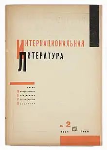 International Literature (Russian: Интернациональная литература, tr. Internatsionalnaya Literatura) was a monthly multi-language literary and political magazine published in the Soviet Union from 1933 to 1943. The magazine was based in Moscow. It was published by the International Union of Revolutionary Writers (or the International Association of Revolutionary Writers) until December 1935, when the Union of Soviet Writers took over. The magazine was published in several European languages and distributed by the publishers associated with the Comintern: for example, it was printed by Lawrence & Wishart in Great Britain under the title International Literature. The magazine contained literary criticism of both Soviet and foreign literature, a chronicle of the international literary world, and the works of the "approved" authors, such as Romain Rolland, Ernest Hemingway, Richard Wright, Heinrich Mann, Lion Feuchtwanger, William Saroyan, André Maurois, Luigi Pirandello. George Orwell had a correspondence with Sergei Dinamov, the editor: Dinamov asked Orwell to send a copy of The Road to Wigan Pier so the work could be published in the magazine; Orwell sent him a copy, but warned that he had been serving in the militia of the POUM. Dinamov replied that the works of the members of POUM could not be published, but it didn't save him from being purged in 1938.[1][2]