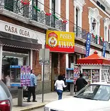 Today many establishments in Pachuca bake pasties.[2] The growth of shops selling pasties coincided with the decline in mining as residents looked for other ways to make a living. A paste may have "classic" meat, potato and turnip filling, perhaps with additional herbs and jalapeño, and may also be filled with red or green mole, pineapple, shredded pork or chicken in chilli or even fish.[3] Sweet fruit pastes may contain pineapple, strawberry and blackberry.[4]