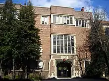 ISH-DC was established in 1936 by a group of Quakers as part of the international student house movement spearheaded by the missionary Waldo Stevenson.[10][11] They sought to promote intercultural exchange[12] and to aid international students of color unable to find housing due to racist housing norms prevalent in the city at the time.[10] The group was originally located at 1708 New Hampshire Avenue NW,[13][14] but in 1946, it moved to its present location, a Tudor mansion built in 1912 for Henri Meserve.[10] In 1967, an additional residential building, Van Slyck Hall, was constructed adjacent to the main building, and in the 1980s, ISH-DC purchased a residential building, now named Marpat Hall, located behind the main building.[10] The main building and Marpat Hall are listed as contributing properties to the Dupont Circle Historic District.[15]