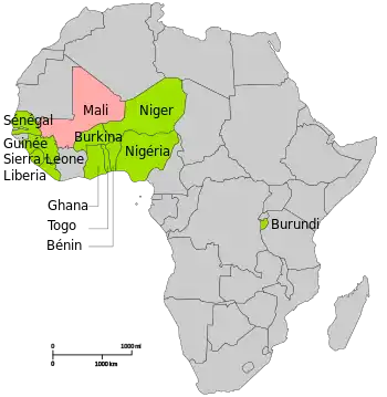 On January 31, the United States Department of State estimated that there were about 1,400 AFISMA troops from Nigeria, Benin, Togo, Senegal, Burkina Faso and Chad on the ground in Mali.[6]