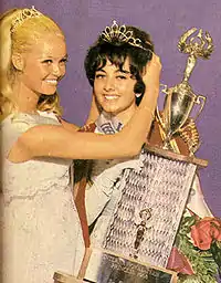 Kristiina Kankaanpää Teen Princess 1967 from Finland is crowning Elaheh Azodi Teen Princess 1968 from Iran.