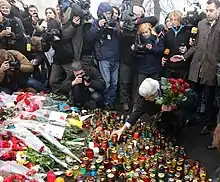 - Republican Party of Russia co-leader Boris Nemtsov said on behalf of his party on 2 December: "We support Ukraine's course toward European integration [...] By supporting Ukraine, we also support ourselves."[81] Four St. Petersburg regional branch representatives of the Republican Party of Russia – PFP visited Kyiv and joined Euromaidan protesters in Maidan Nezalezhnosti on 9 December because they "felt the emotional impulse to go there and back supporters of Ukraine's association agreement with the EU".[82]