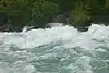 Rapids with moderate, irregular waves which may be difficult to avoid and which can swamp an open canoe. Complex maneuvers in fast current and good boat control in tight passages or around ledges are often required; large waves or strainers may be present but are easily avoided. Strong eddies and powerful current effects can be found, particularly on large-volume rivers. Scouting is advisable for inexperienced parties. Injuries while swimming are rare; self-rescue is usually easy but group assistance may be required to avoid long swims. Rapids that are at the lower or upper end of this difficulty range are designated Class III- or Class III+ respectively. | ![]() |