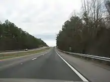 Interstate 26 (I-26) is a main route of the Interstate Highway System in the Southeastern United States. Nominally east–west, as indicated by its even number, I-26 runs from the junction of U.S. Route 11W (US 11W) and US 23 in Kingsport, Tennessee, generally southeastward to US 17 in Charleston, South Carolina.[2] The portion from Mars Hill, North Carolina, east (compass south) to I-240 in Asheville, North Carolina, has signs indicating FUTURE I-26, because the highway does not yet meet all of the Interstate Highway standards. A short realignment, as an improvement in the freeway, was also planned in Asheville but has been postponed indefinitely due to North Carolina's budget shortfalls.[3]