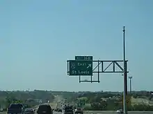 Every three years, the Missouri Department of Transportation (MoDOT) conducts a series of surveys on its highways in the state to measure traffic volume. This is expressed in terms of annual average daily traffic (AADT), which is a measure of traffic volume for any average day of the year. In 2009, MoDOT calculated that as few as 38,152 vehicles traveled along the highway at the northern terminus just north of the interchange with I-70 and as many as 75,647 vehicles used the highway just east of the Grandview Triangle.[8] As part of the Interstate Highway System,[9] the entire route is listed on the National Highway System, a system of roads that are important to the nation's economy, defense, and mobility.[10]
