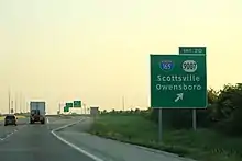 On September 5, 2018, it was announced that the entire parkway would be signed with I-165 shields by the end of 2019, even before completion of the parkway's upgrades,[9] thus officially bringing it to Interstate status.[10][11][12] On March 6, 2019, the resigning of the freeway began, thus officially designating it as I-165, with exit numbers reverting to the parkway's original exit numbers prior to its extension to US 231 in November 2011.[13][14] In 2018, Representative Suzanne Miles of Owensboro introduced a bill that would have given the highway an honorary designation of "William H. Natcher Expressway", but the bill did not make it out of committee.[15]