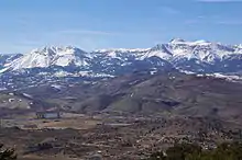 Unlike the old US 395 which ran along the valley floor of Pleasant Valley, I-580 is routed in the mountains overlooking the valley and crosses the Galena Creek Bridge, the largest cathedral arch bridge in the world.[4] Along the descent from these mountains into the Truckee Meadows and Reno, the highway cuts through the center of one of the largest geothermal powerplants in the US, Ormat Technologies's Steamboat Hills Complex power station.[5] The freeway also passes between the clusters of Hot Springs in Steamboat Hills that provide steam for the plant.