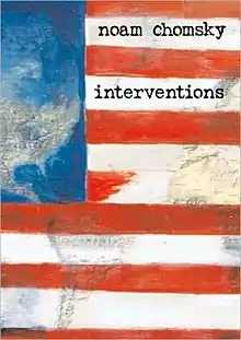 Interventions is a book by Noam Chomsky, an American academic linguist and political activist. Published in May 2007, Interventions is a collection of 44 op-ed articles, post-9/11, from September 2002, through March 2007. The book's subjects span from 9/11 and the Iraq War to social security and intelligent design, South America and Asia, the Israeli occupation of Palestine and the election of Hamas, Hurricane Katrina, and the US concept of "just war".[1] The Pentagon banned the book from its Guantanamo Bay prison because it might negatively "impact ... good order and discipline."[2] Chomsky replied that, "This happens sometimes in totalitarian regimes."[3]