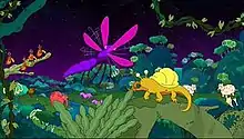 Futurama: Into the Wild Green Yonder is a 2009 American direct-to-video adult animated science fiction comedy-adventure film based on the animated series Futurama, and the fourth and final of the direct-to-DVD films that make up the show's fifth season.[1] The film was written by Ken Keeler, based on a story by Keeler and David X. Cohen, and directed by Peter Avanzino. Guest stars include Phil Hendrie, Penn Jillette (credited with Teller), Snoop Dogg, and Seth MacFarlane, who sings the theme song.[2] In the movie, Leela becomes an outlaw when she and a group of ecologically-minded feminists attempt to save an asteroid of primitive life forms and the Violet Dwarf star from being destroyed, while Fry joins a secret society and attempts to stop a mysterious species known as the "Dark Ones" from destroying all life in the universe. The title itself is a reference to the U.S. Air Force Song, the main chorus of which describes reaching "Into the wild blue yonder".
