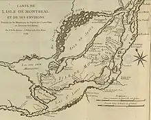 Montgomery then led his troops north and occupied Saint Paul's Island in the Saint Lawrence River on November 8, crossing to Pointe-Saint-Charles on the following day, where he was greeted as a liberator.[34] Montreal fell without any significant fighting on November 13, as Carleton, deciding that the city was indefensible (and having suffered significant militia desertion upon the news of the fall of St. Johns), withdrew. He barely escaped capture, as some Americans had crossed the river downstream of the city, and winds prevented his fleet from departing right away. When his fleet neared Sorel, it was approached by a boat carrying a truce flag. The boat carried a demand for surrender, claiming that gun batteries downstream would otherwise destroy the convoy. Based on uncertain knowledge of how real these batteries were, Carleton elected to sneak off the ship, after ordering the dumping of powder and ammunition if surrender was deemed necessary. (There were batteries in place, but not nearly as powerful as those claimed.)[35] On November 19, the British fleet surrendered; Carleton, disguised as a common man,[36] made his way to Quebec City. The captured ships included prisoners that the British had taken; among these was Moses Hazen, a Massachusetts-born expatriate with property near Fort St. Johns whose poor treatment by the British turned him against them. Hazen, who had combat experience in the French and Indian War and went on to lead the 2nd Canadian Regiment throughout the war, joined Montgomery's army.[37]