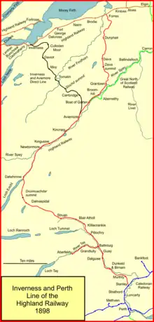 The Inverness and Aviemore Direct Railway was a section of railway built by the Highland Railway to provide a shorter and more direct route between Inverness and Aviemore, carrying its main line traffic to Perth and the south.