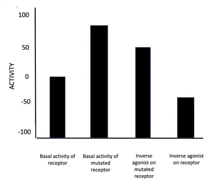 A prerequisite for an inverse agonist response is that the receptor must have a constitutive (also known as intrinsic or basal) level of activity in the absence of any ligand.[3] An agonist increases the activity of a receptor above its basal level, whereas an inverse agonist decreases the activity below the basal level.