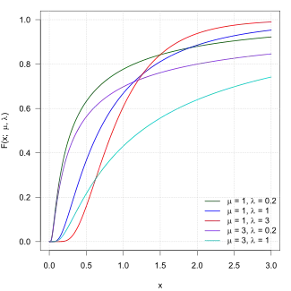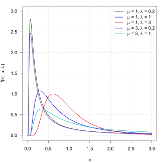 for x > 0, where is the mean and is the shape parameter.[1]
