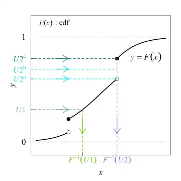 Expressed differently, given a cumulative distribution function and a uniform variable , the random variable has the distribution .[4]