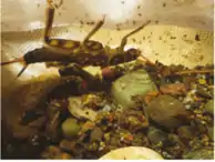 Invertebrate species adapt to a stream's current through the organs or appendages that physically attach them to the substrate, or association with large boulders or thick plant growth to buffer the disturbances associated with flow.[9] An example of the former is the family Heptageniidae in the order Ephemeroptera. Larvae within the genus have modified gills forming a friction disc that allows them to cling to the substrate in rapid moving waters.[3] An example of the friction disk can be seen on the image to the right which shows the ventral side of a species within the genus epeorus.