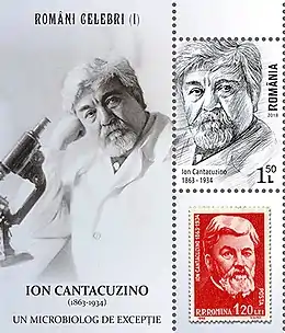 Ioan I. Cantacuzino (Romanian pronunciation: [iˈo̯aŋ kantakuziˈno]; also Ion Cantacuzino; 25 November 1863 – 14 January 1934) was a renowned Romanian physician and bacteriologist, a professor at the School of Medicine and Pharmacy of the University of Bucharest, and a titular member of the Romanian Academy. He established the fields of microbiology and experimental medicine in Romania, and founded the Ioan Cantacuzino Institute.