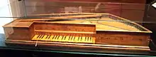 Two instruments by Ioes Karest have survived; both are polygonal virginals. Both have sides of thin maple or sycamore,[7] inset keyboards, and soundboards of spruce or fir.[8] They both also feature applied moldings that outline the case at top and bottom.