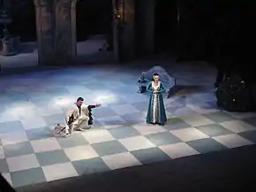 The blind singer Nafset Chenib (headliner of the 2014 Winter Paralympics closing ceremony [7][8]) performed in the title role in the Ivangorod Fortress on 29 August 2021.[9][10]