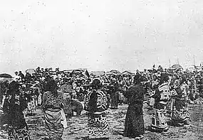Iomante (イオマンテ), sometimes written as Iyomante (イヨマンテ), is an Ainu ceremony in which a brown bear is sacrificed. The word literally means "to send something/someone off". In some Ainu villages, it is a Blakiston's fish owl, rather than a bear, that is the subject of the ceremony. In Japanese, the ceremony is known as "sending off the bear" (熊送り, kumaokuri) or, sometimes, "the bear festival" (熊祭, kumamatsuri). In the modern day, the ceremony no longer involves the killing of an animal, but is performed for wild animals that die in accidents or captive animals that die of old age. [1]
