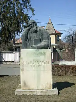 Ion I. Agârbiceanu (1907–1971), the author of pioneering work in spectroscopy and professor at the Polytechnical Institute from 1951, is famed for his invention of a gas laser in 1962.[46] His younger brother Nicolae (1908–1991) was a sculptor, and in his youth studied composition at Schola Cantorum in Paris.[254] He lived in France as "Nicolas Alba"; incapacitated by Pott disease from 1948, he was cared for by the Roman Catholic Diocese of Châlons until his death.[255] Another one of the writer's sons, Tudor, was a surveyor. He and his family remained in possession of Agârbiceanu's large villa in Cluj,[256] which was later declared a historic monument. The writer's grave was awarded the same status by Romania's Culture Ministry in 2012.[257] Among the localities associated with Agârbiceanu's work, Bucium is home to a Fefeleaga Memorial House, a modern reconstruction which used Romanian folk houses as a blueprint; Sofia Danciu's actual home burned down in summer 2014.[29]