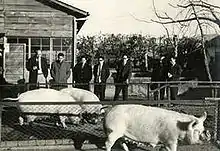 In 1959, Yamanashi Prefecture in central Japan suffered two significant typhoons in less than a month, devastating much of the prefecture’s agriculture sector. Master Sergeant Richard Thomas, who was from Iowa, was working in public relations for the U.S. Air Force in Tokyo at the time. When Thomas heard about the heavy damage to the livestock industry in Yamanashi prefecture, he considered arranging Iowa hogs to be sent to Yamanashi as an opportunity to help revive the devastated industry. He presented his plan to Don Motz, the U.S. agricultural attaché at the U.S. Embassy in Tokyo, who was excited about the project and began working on its logistics.[4]