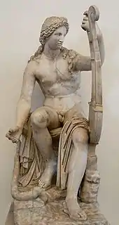 From about 1620 Buzzi was virtually the house restorer for Cardinal Ludovisi,[4] who possessed in his villa on the Quirinale one of the finest collections of Roman sculptures in Rome,[5] and commissioned repairs from Gian Lorenzo Bernini—whose minor restorations to the Ludovisi Ares are discreet—and Alessandro Algardi, who supported himself with restoration work, as well as Buzzi. Some of Buzzi's restorations are minor interventions to satisfy the taste of the day, as with the Ludovisi Dying Gaul; while others are more creative and incur the uneasy dissatisfaction of 21st-century writers on antiquities,[6] especially when unrelated fragments were assembled, to create essentially new compositions, such as Buzzi's Amore and Psyche in the Ludovisi collection. A Hermaphroditus belonging to Ludovisi was restored by Buzzi, 1621–23; it was later purchased by Ferdinando II de' Medici and is in the Uffizi.[7] Buzzi restored the marble group in the Prado now identified equally as Castor and Pollux or as Orestes and Pylades[8] providing the headless torso with an ancient bust of Antinous, the emperor Hadrian's favorite.