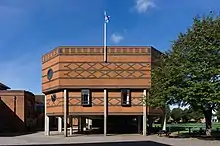 North of the town centre, Ipswich School has four parts on three adjacent sites. The Pre-Prep and Nursery were established in 1883 with the aim of preparing children aged 7 to 11 for entry into the Senior School. The Senior School occupies the main school site. The main buildings are a distinctive example of Victorian architecture, with Tudor style brick. The main building and chapel are both Grade II listed.[1] The school buildings surround a central playing field and cricket square along with the Cricket Pavilion. The remainder of the School's sport's fields are located at a nearby site on the edge of the town. The School has a new purpose-built music school, adjacent to the Cricket Pavilion.