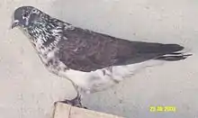 The Iranian Highflying Tumbler pigeon also known as "Persian Highflying Tumbler" in Europe and "Tehrani" in Iran is a breed of domestic pigeon bred in Iran for performance and endurance flying competitions. They fly at a very high altitude and at times out of sight. The tumbling is nothing like a Birmingham Roller, individual flips, occasionally hovering before it does the flip.