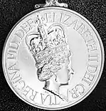 The obverse has the crowned effigy of Queen Elizabeth II facing right, with the inscription ELIZABETH II DEI GRATIA REGINA FID DEF.