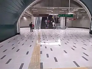 Irarrázaval is a transfer station between the Line 3 and Line 5 of the Santiago Metro. The station is so named due to its location beneath Avenida Irarrázaval, a main road of the commune of Ñuñoa, which in turn was named after the Chilean lawyer and politician Manuel José Yrarrázaval Larraín. The Line 5 station was opened on 5 April 1997 as part of the inaugural section of the line, from Baquedano to Bellavista de La Florida. The Line 3 station was opened on 22 January 2019 as part of the inaugural section of the line, from Los Libertadores to Fernando Castillo Velasco.[3] Construction of the 6.5 km tunnel between Irarrázaval and Fernando Castillo Velasco was completed in 2017 on a budget of 145 million euro.[4]