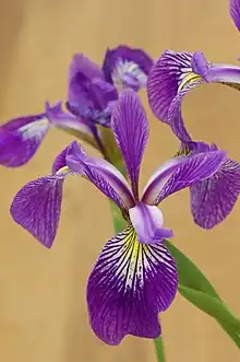 Iris × robusta, called the Windermere iris, is a hybrid species of flowering plant in the family Iridaceae.[1] Its parents are Iris versicolor and Iris virginica, both of which are native to North America.[2] Wild populations have been found in Michigan and Ontario, and it has been introduced into Great Britain.[3] It is a rhizomatous perennial, characterised by its violet-blue flowers and purple-flushed foliage.[4] It has a number of cultivars, including 'Gerald Darby', 'Mountain Brook', 'Purple Fan' and 'Nutfield Blue'.[5] Its cultivar 'Dark Aura' has gained the Royal Horticultural Society's Award of Garden Merit.[4]