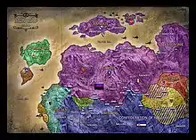 Iron Grip: Warlord is set in a dieselpunk world with a society that can be described as a blend of Napoleonic era politics and World War II technology. The Iron Grip world is home to many different landmasses, but Warlord focuses on Kathos, a frigid region to the northeast resembling Eastern Europe. Kathos is divided into two large military powers and a handful of neutral countries. To the north is the Sovereign Republic of Rahmos, possessing the world's most powerful airship fleet and a technologically advanced military. Their territory includes a number of client states in addition to their home island. The country of Fahrong (known as the Confederation of Nallum) is the other major power. With uneven and mountainous terrain, the Confederates employ mechanized walkers known as 'Arachs' along with the largest standing army. Central to the game is Atelia, a medium-sized country known for its abundant resources and many different ethnic and tribal groups. At the time of the game, Atelia is a country traditionally divided into city-states and nomads. Its lands are contested by the two Kathos military powers and the remaining scraps of the country are ruled by Warlords.