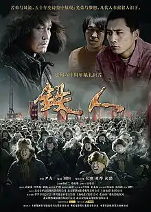 Tieren (铁人; "Iron Man") is a 2009 Chinese film directed by Li Yin based on the life of the model worker Wang Jinxi, played by Wu Gang. The film was released on Labor Day (May 1), 2009 as part of the celebration of the sixtieth anniversary of the founding of the PRC.[1] Wu Gang won the Golden Rooster Award for Best Actor 2009, Shanghai Film Critics Award for Best Actor and was also nominated for Huabiao Award for Outstanding Actor.