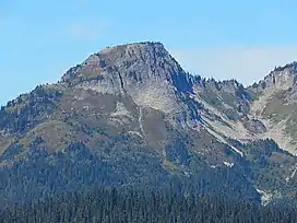 Iron Mountain is a 6,286-foot (1,916-metre) mountain summit located in Mount Rainier National Park in Pierce County of Washington state.[1] Part of the Cascade Range, it is situated near the base of the Success Cleaver, overlooking Indian Henry's Hunting Ground. Its nearest higher peak is Copper Mountain, 0.3 miles (0.48 km) to the north.[2] The summit provides views of Mount Rainier, Mount Adams, Mount St. Helens, Mount Wow, and peaks of the Tatoosh Range. Precipitation runoff from Iron Mountain drains into Tahoma Creek, Devils Dream Creek, and Fishers Horn Pipe Creek, which are all tributaries of the Nisqually River. There were great hopes in the late 1800s that mines on Mount Rainier could be a source of precious metals such as copper, silver, and gold. Dark reddish rock found on Iron Mountain was thought to be iron or iron oxide.[4] Its name was officially adopted in 1932 by the United States Board on Geographic Names.[1]