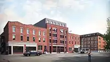 Falls Center was originally constructed in the 1920s by Ritter & Shay, a prominent architecture firm in Philadelphia during the 1920s, and Iron Stone worked hard to preserve as much of the architectural elements as possible throughout the redevelopment process. The site has been successfully adapted for mixed-use student housing, commercial space and medical offices and has led to the creation of over 2,000 permanent full-time jobs.[2] The Falls Center is home to over 18 businesses and is one of the largest centers of commerce in East Falls.[3]