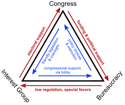 - Occupying the third corner of the triangle are bureaucrats, who often are pressured by the same powerful interest groups their agency is designated to regulate,[18] and in some cases have close ties to the regulated industry.