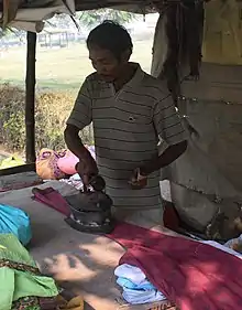 Historically, larger tailors' shops included a tailor's stove, used to quickly and efficiently heat multiple irons. In many developing countries a cluster of solid irons, heated alternatively from a single heating source, are used for pressing clothes at small commercial outlets.